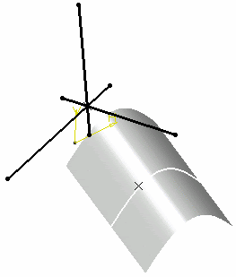 Proposed Start and End points of the new line are shown.If the point does not lie on the support surface, the minimum distance between the point and the surface is computed, and the vector normal to the surface is displayed at the resulted reference point. -